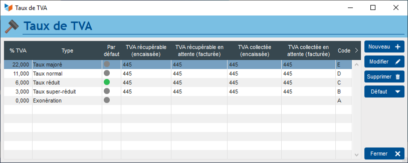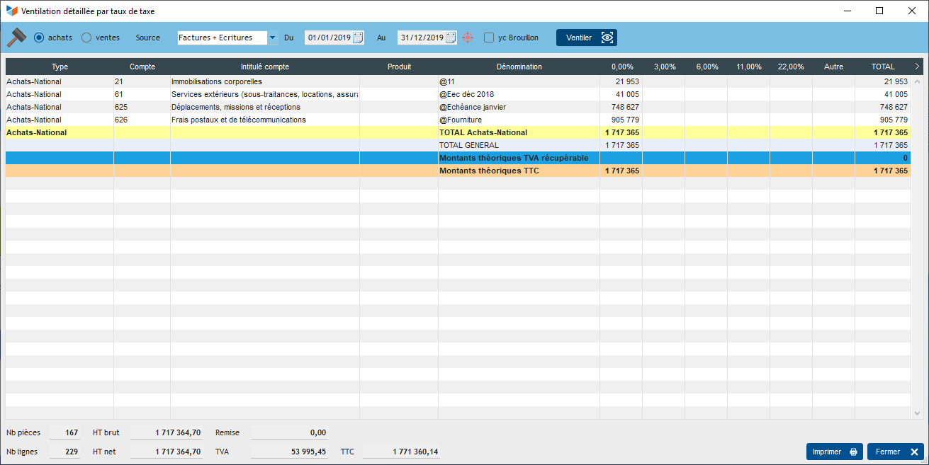 J'ai pas pensé à faire un imprim écran avant de mettre à jour … Oui finalement, j'ai fait le total par taux avec un tableur excel et mis à jour les arrêtés de TVA/TGC