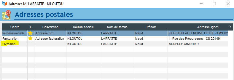 Je voudrais pouvoir choisir une adresse de livraison DU MEME CONTACT un peu comme ici