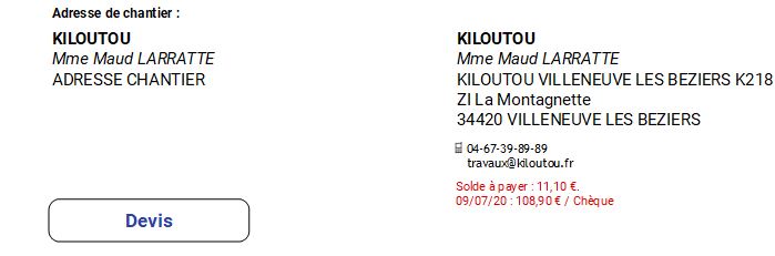 En fait, je ne veux pas de spécifique, seulement utiliser la fonction qui existe déjà pour afficher une adresse de livraison sur un devis.