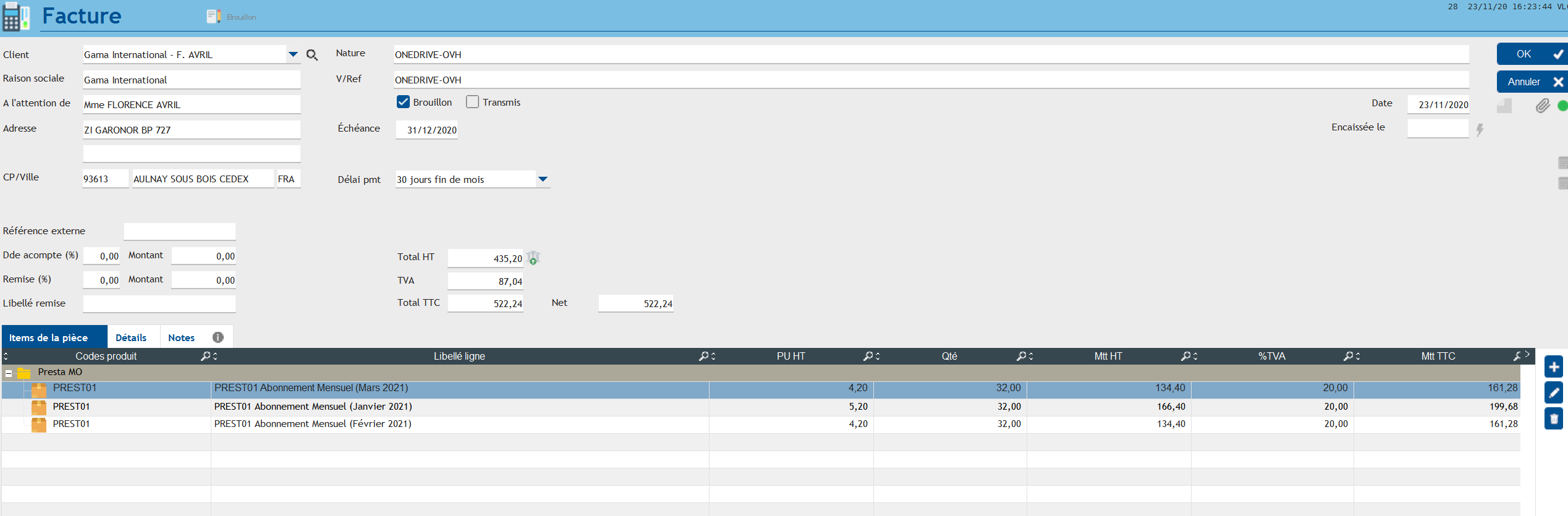 Du coup ma facture se retrouve avec des lignes mélanger.