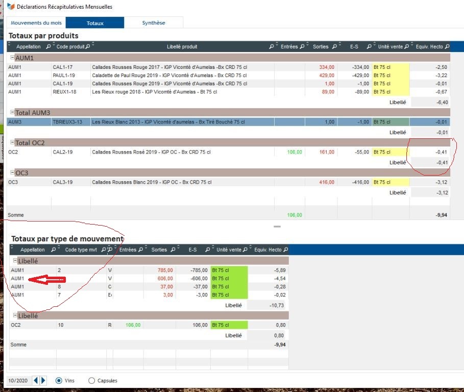 Heureusement les "Totaux par produits" est correct, (ce qui permet manuellement de finaliser sa DRM - mais ce n'est pas le but !)
