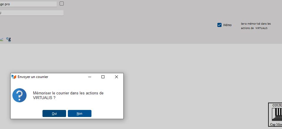 Une fois l'impression réalisée, en cliquant sur "fermer", la question "Mémoriser le courrier dans les actions du contact ?" s'affiche.