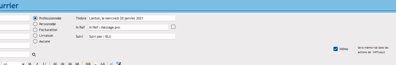 Lors de la rédaction du courrier, la case "Mémo" étant cochée, il sera mémorisé dans les actions du contact.