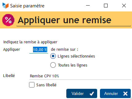 J'ai essayé l'option accessible via clic droit sur les lignes d'une facture : Appliquer une remise