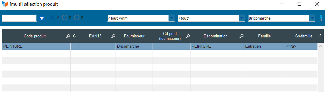 A noter que si je sélectionne le fournisseur par défaut (PROSERVICES) le produit apparait bien