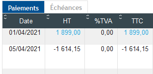 Par contre, quand j'affiche les paiements sur les factures, j'ai ceci :