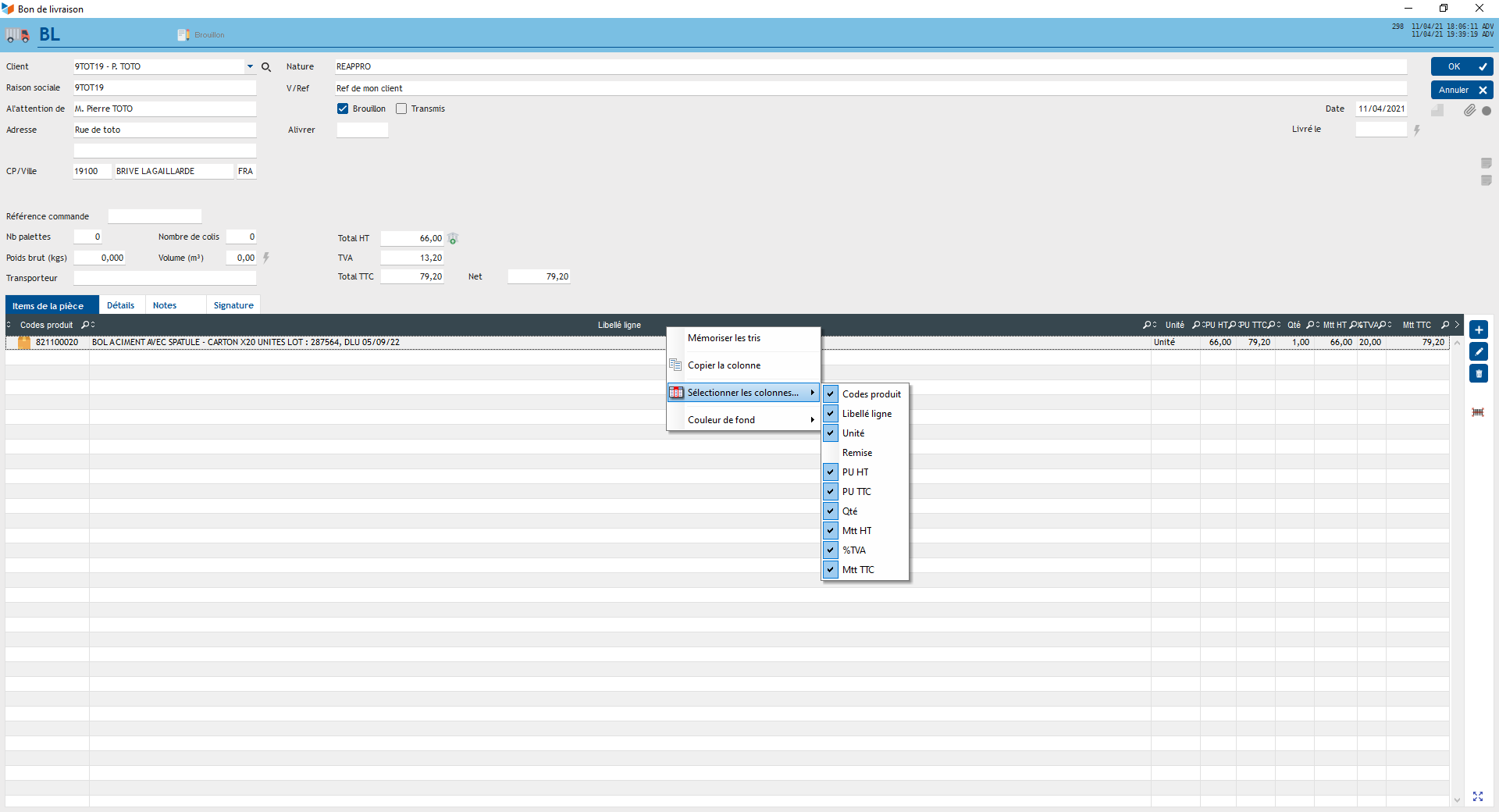 Mais sur mon BL, j'arrive pas à faire apparaitre les champs qu'il me faut :