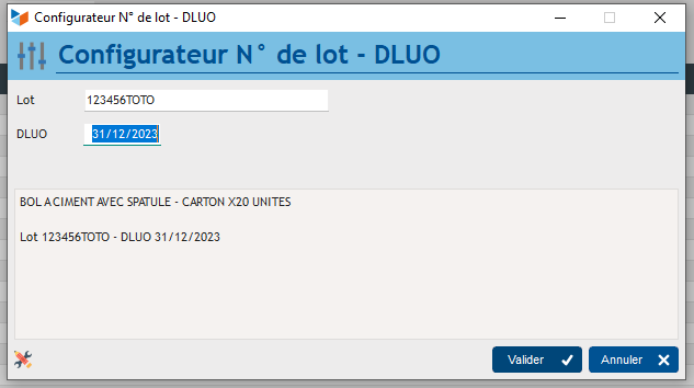 Mais vous m'indiquez d'utiliser cette méthode, cela sous-entend que ça devrait fonctionner ? Je dois-je comprendre que ce configurateur est une "étape" avant que Gestan ne gère les num de lot et dluo directement au niveau des produits ?