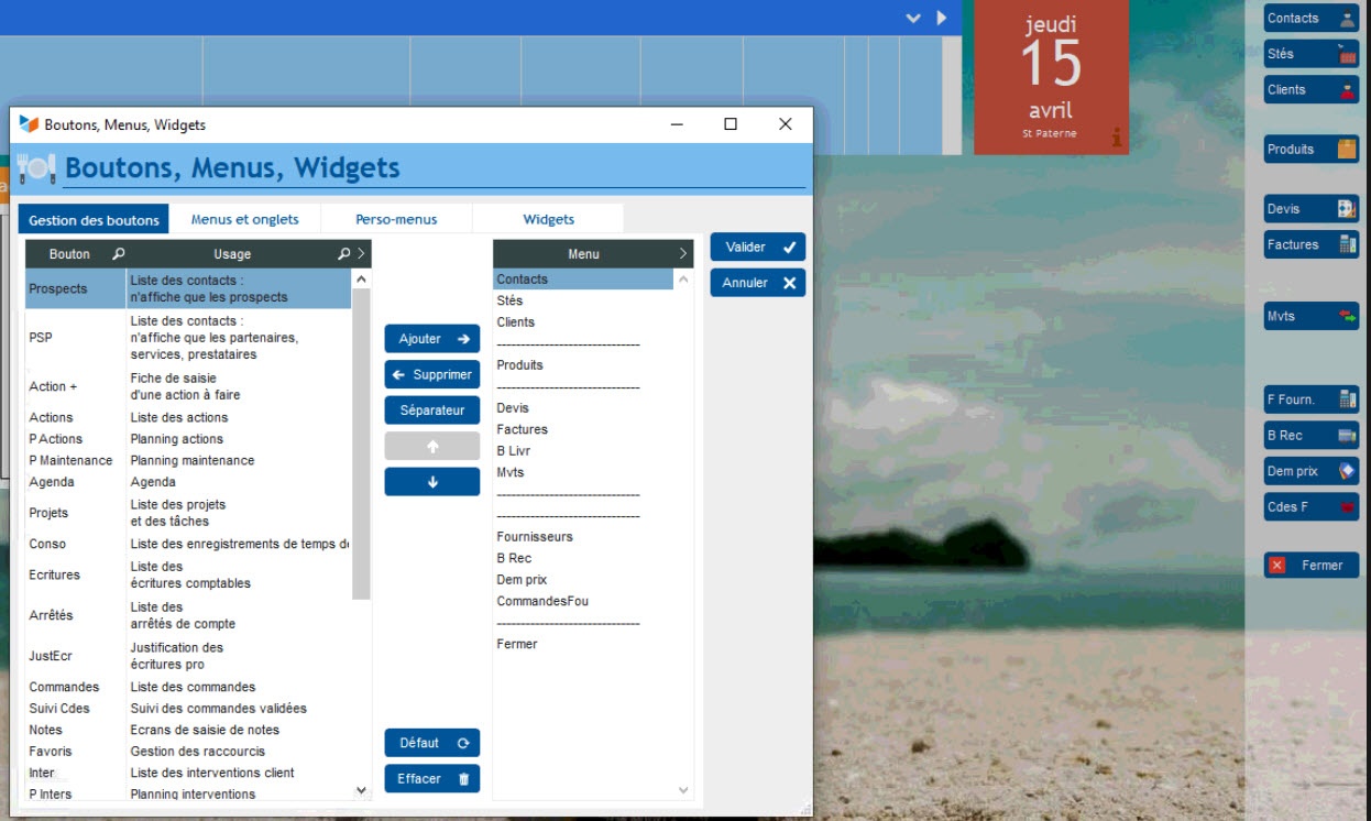 nous allons dans les options de boutons pour l'ajouter