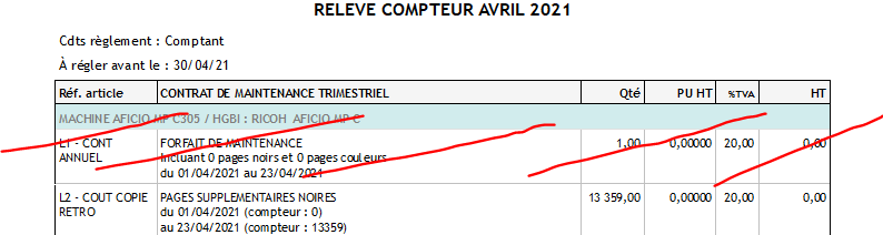 Je ne gère pas de forfait pour mes clients. Tout est à la copie.