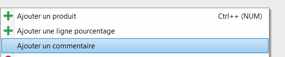 2) clic droit sur la liste des lignes du devis sue Ajouter un commentaire