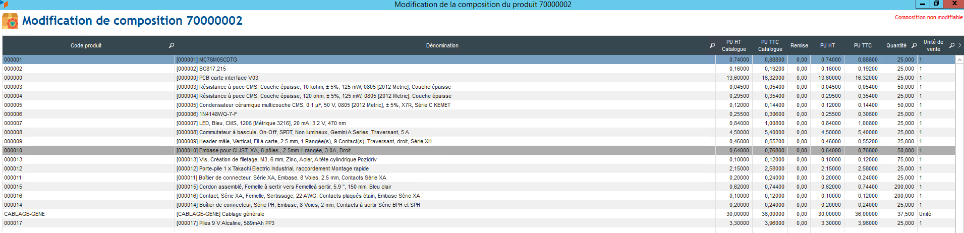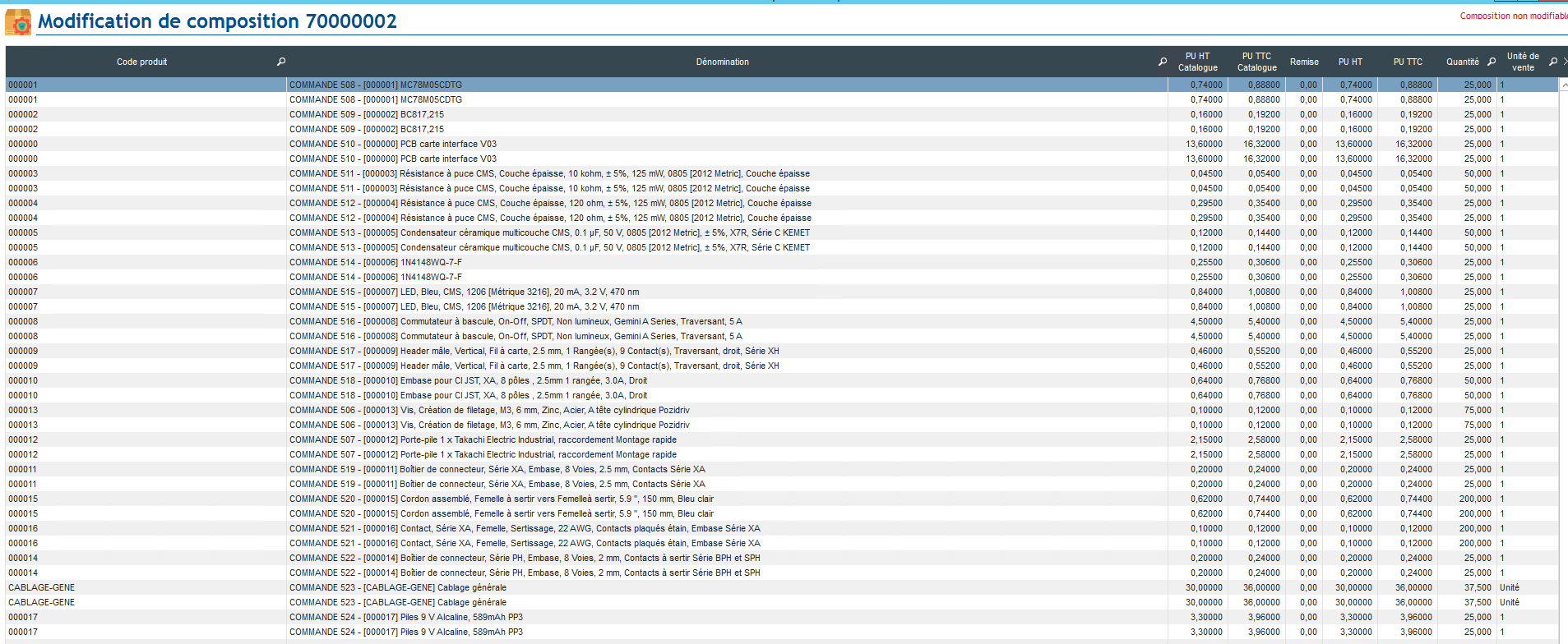 3) Avec ce produit composé j'ai crée 1 bon de commande, en double cliquant sur l'item de Produit composé, c'est toujours OK