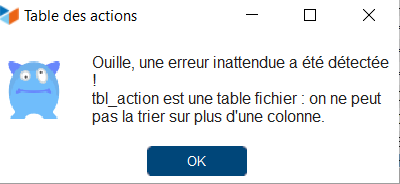 Anomalie constatée chez plusieurs clients lorsqu'on clique sur la colonne Date pour le tri des actions dans la table des actions :