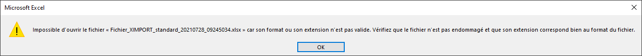 en allant vérifier le fichier excel dans le répertoire celui ci est bien présent en fichier XLSX mais impossible d'ouvrir avec excel