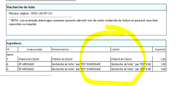 En effet lorsque j'imprime une feuille d'intervention, j'ai 3 colonnes pour lesquels le même intitulé apparait : "Code Produit" "Dénomination" et "libellé" : c'est à chaque fois le code produit qui apparait