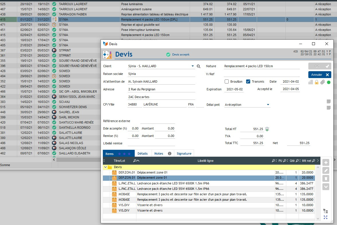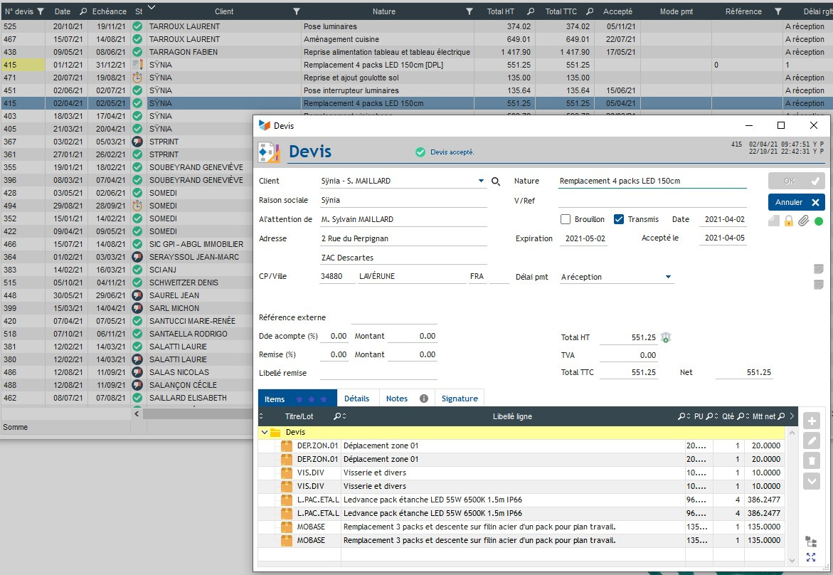 Du coup j'ai fait un nouveau devis... tadam il disparait à la validation... là, je suis perplexe... Je ne peux pas créer de devis.