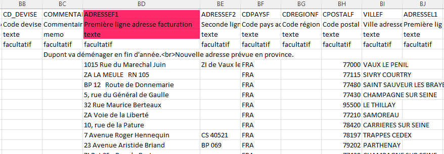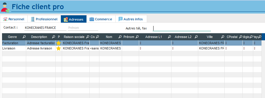 Sauf que voila les adresses ne sont pas prise en compte et n'apparaissent pas dans la fiche du client.