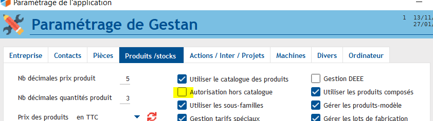 Dans le paramétrage, on peut décocher la case Autorisation hors catalogue