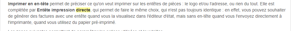 Et question subsidiaire, a quel endroit au moment de l'impression, j'indique si c'est un papier blanc ou pré-imprimé ? Plus simplement l'aperçu avant impression devrait permettre de désactiver entête et bas de page plutôt que de le faire dans paramétrage ?