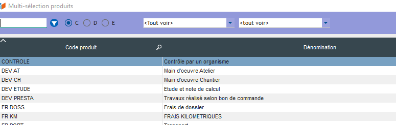 la j'ai rentré mon premier produit en utilisant la petite case de sélection