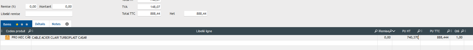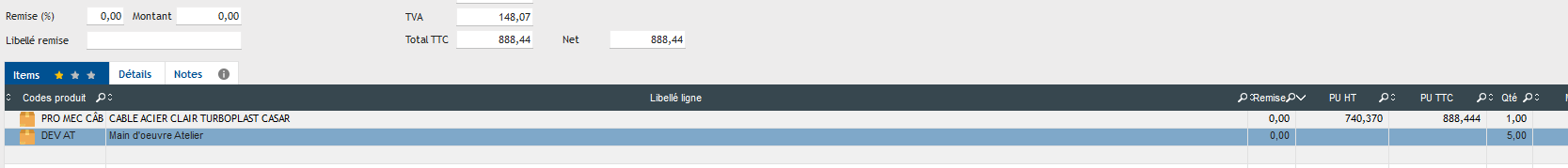 je sélectionne mon produit et tape sur la touche entrée de mon clavier ce qui me ramène à ma page de commande suivante