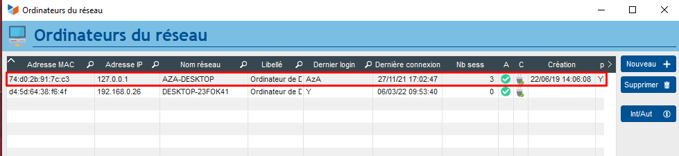 Sur la fenêtre "Réseau" qui apparait, je trouve mon ordi actuel ainsi que l'ancien avec un localhost affiché que je n'arrive pas à "supprimer".