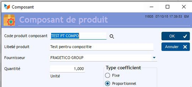 Le matériau « Test pentru compozitie » est un matériau de base dans le calcul des prix, mais à partir de