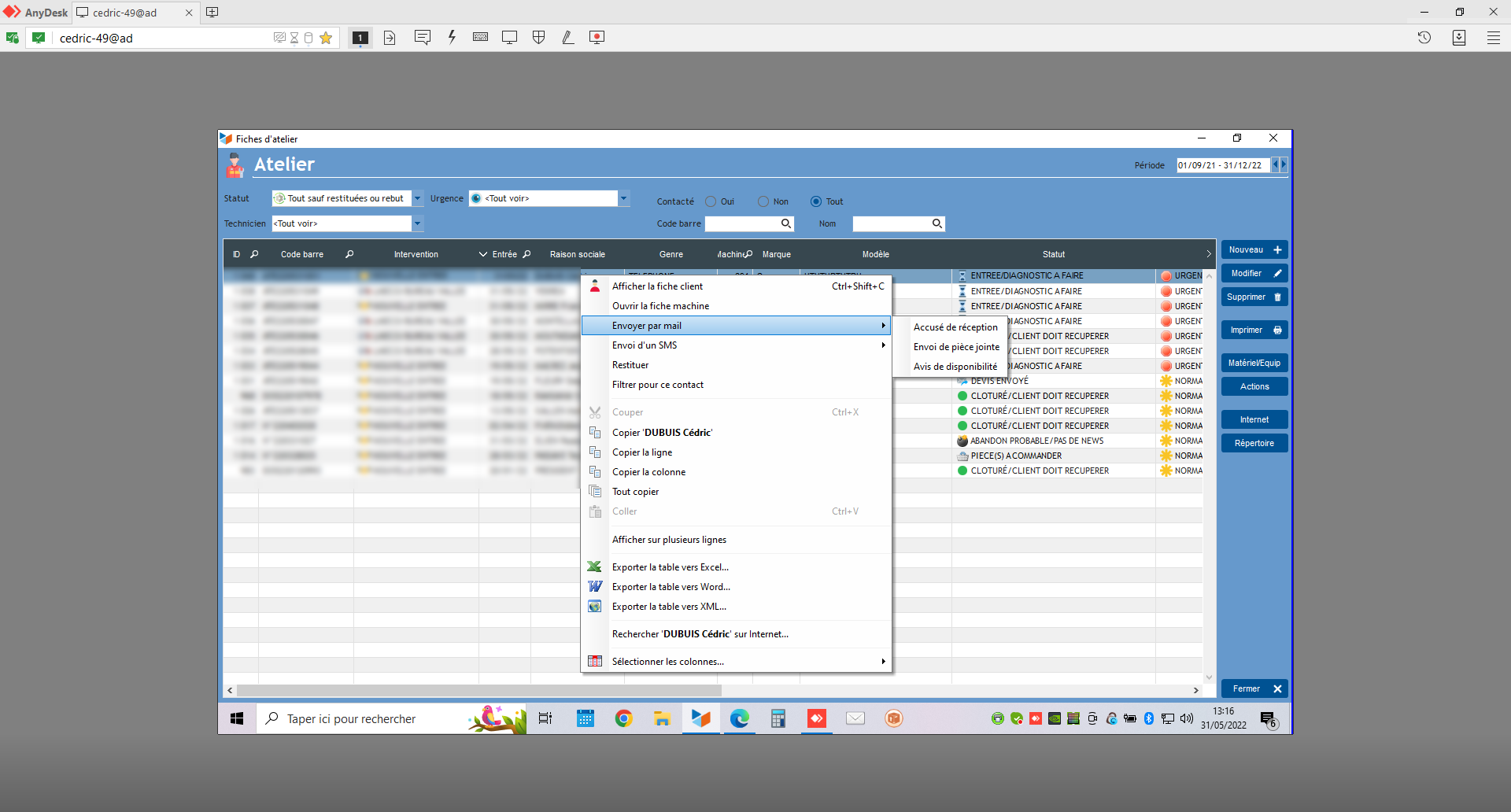 Depuis quelques temps, dans la liste des fiches d'atelier, lorsque je clique droit, pour envoyer les fiches d'atelier, le client reçoit systématiquement 2 mails :