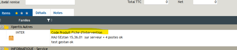 Avant nous avions dans la première ligne en jaune ci-dessus le nom du technicien, la date et l'heure d'intervention. En seconde ligne nous avions l'objet et là nous avons les notes qui sont reprises (inutile de tout reprendre)