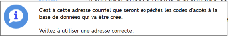 Dans la fenêtre de création d'une entreprise, au moment de renseigner les coordonnées de l'entreprise, à droite du champ "Courriel", le message suivant s'affiche: