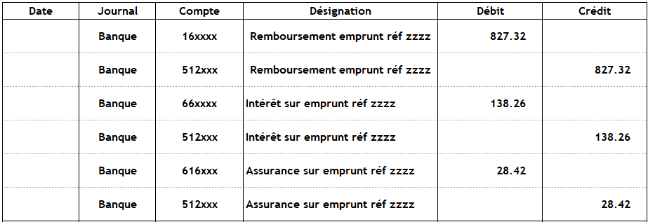 Les montants indiqués sont totalement fantaisistes et vous devez considérer ceux de votre tableau d'amortissement.