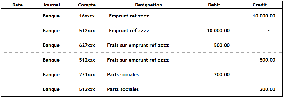 L'écriture de déblocage de l'emprunt (à adapter en fonction des conditions de réalisation de l'emprunt :