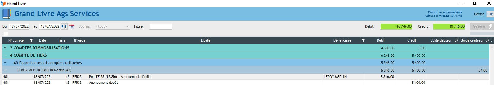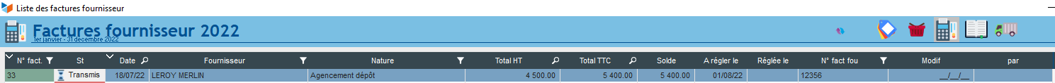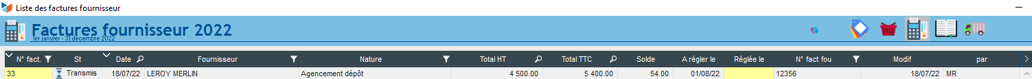 J'ai saisi la facture de mon fournisseur pour un montant TTC de 5 400.00€.