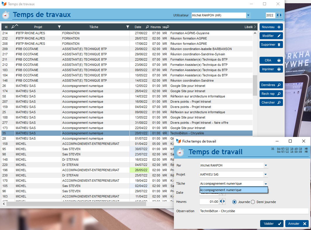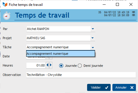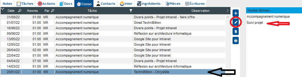 Je voudrai affecter cette conso à "suivi projet". Je clic sur le crayon :
