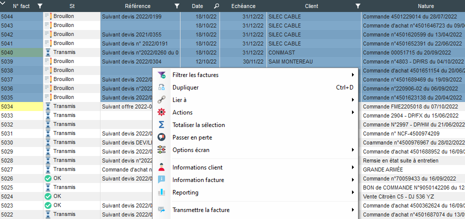 Il faut impérativement ouvrir chaque facture pour les mettre en transmis.