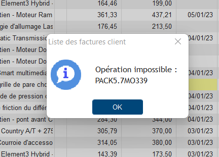 Pour les entrées de stock, je le fait manuellement dès réception des marchandises au magasin. Pour le déstockage, j'aurais voulu un déstockage automatique sur base des factures client, j'ai vu que cela était impossible et qu'il fallait déstocker avec le bouton StockOut. Pas de soucis pour moi mais j'ai un souci, le déstockage des produits composé est un problème, et je parle des composants du produit. Lorsqu'une facture présente un produit composé, le destockage est impossible et j'ai ce message d'erreur.