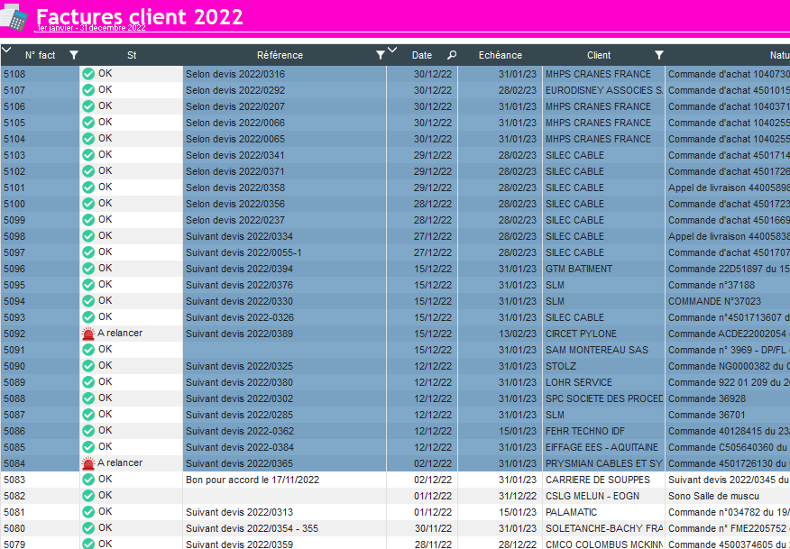 J'ai bien choisi l'année 2022 mais afin de faire une action sur plusieurs factures il faut que je les sélectionnes.