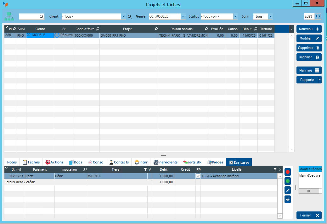 Actuellement je peux lier par un click-droit l'écriture globale à un seul projet.