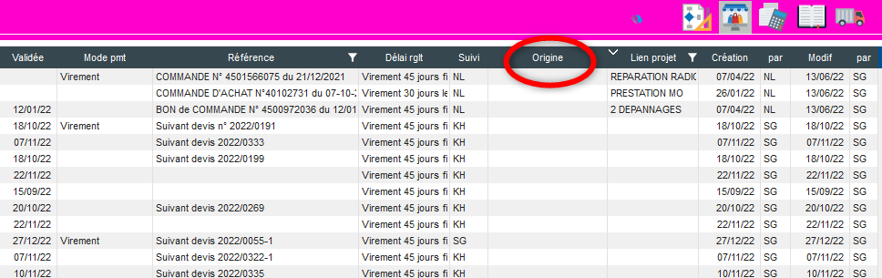 Dans la liste des commandes clients et tout autre liste d'ailleurs il y a une colonne origine.
