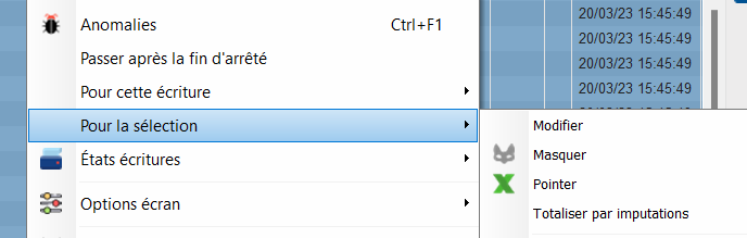 clic droit sur la liste des encaissements : Totaliser la sélection