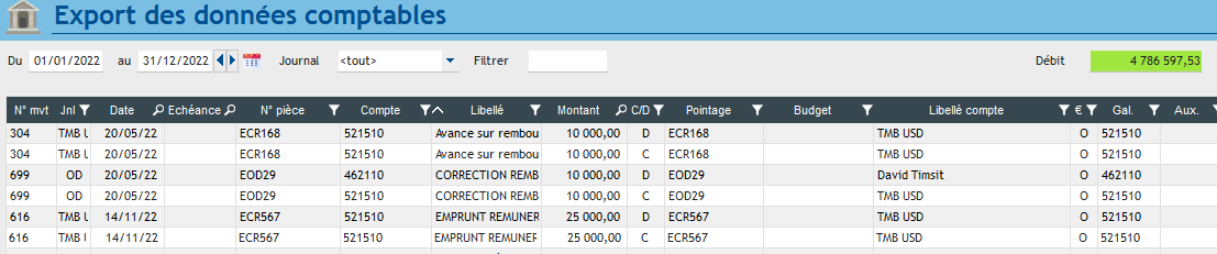 Le logiciel Débite par exemple le 521510 et crédite le même compte banque au lieu de 1611 EMPRUNT ou le 4611 CRÉDITEURS DIVERS en comme le montrent les états annexe.