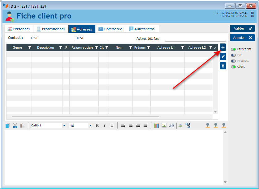 Ensuite, vous ouvrez la fiche du client en question et vous ajoutez une adresse dans l'onglet Adresses :
