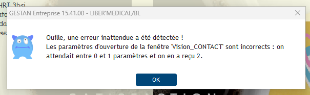 Puis la loupe pour accéder à la liste des contacts , et j'ai ce message :