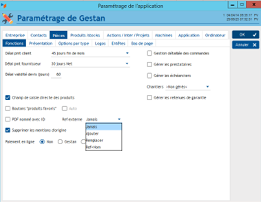 En modifiant sur la liste déroulante « référence externe » les différentes possibilités ne changent aucunement.