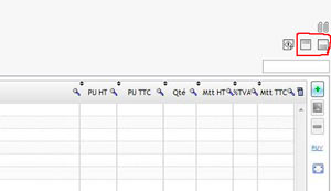 Ces fameux tampons géniaux sont appelés par les icônes figurant à droite et en haut des factures et devis, comme sur l'image ci-dessous :